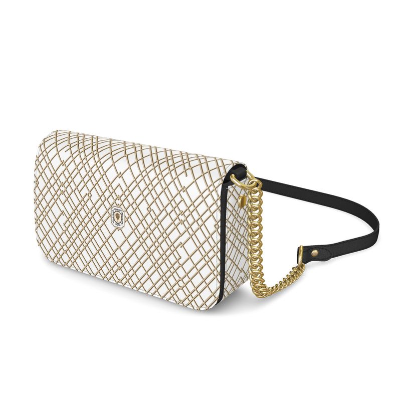 Linden Crossbody Leather Bag (white w/gold chain strap)